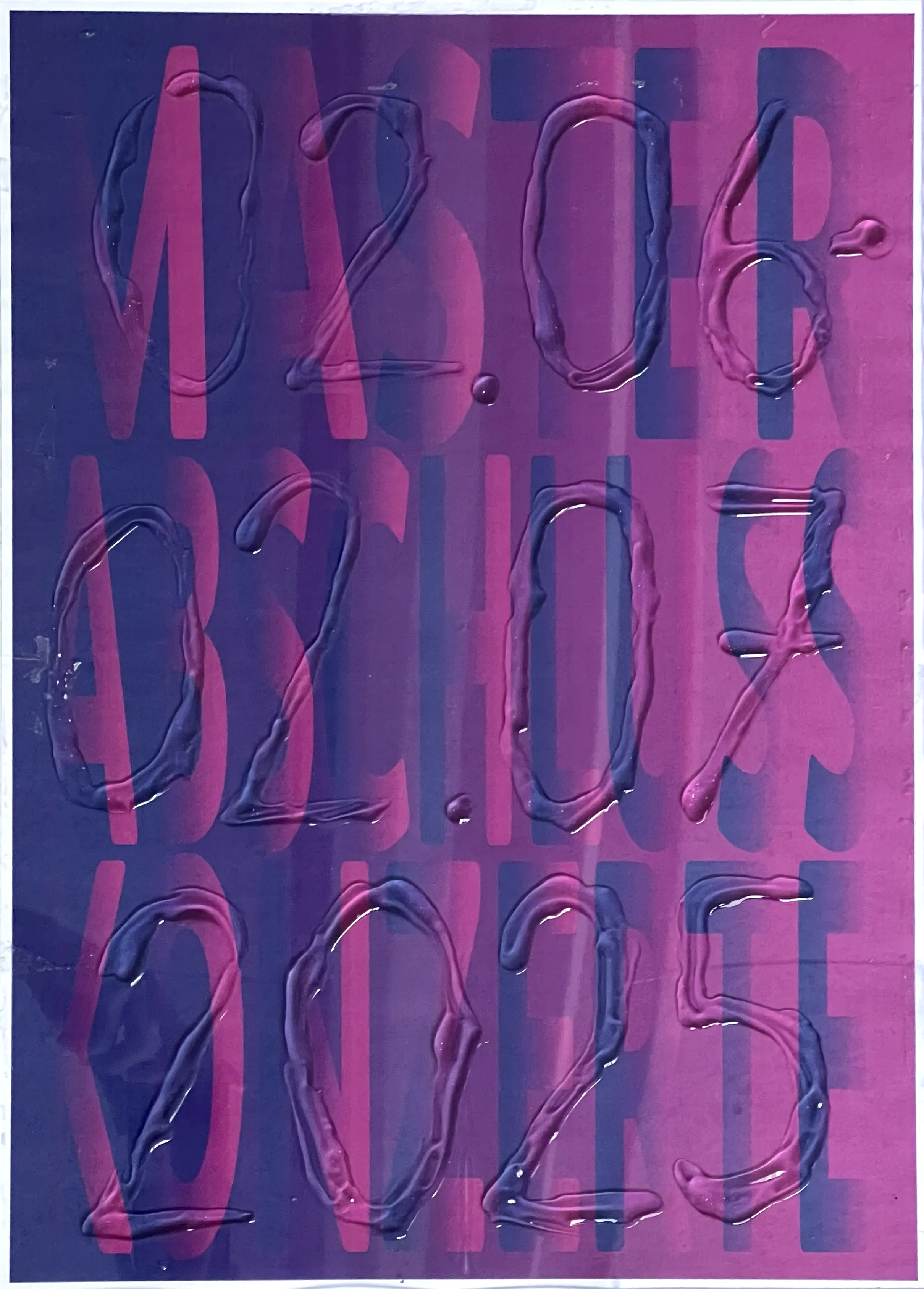Diese Aspekte setzte ich für meinen Plakat- und Animationsentwurf, für die im Sommer 2025 stattfindenden Master Abschlusskonzerte der Hochschule Luzern, um. Die Bewegung entstand durch eine laufende Animation, welche ich im Hintergrund auf dem Laptop abspielte. Den Verzug erzeugte ich durch eine mit Wasser gefüllte Glasflasche, welche ich in einem 10 Zentimeter Abstand zum Laptop hinstellte. Als Inspiration diente der Himmel an Sommerabenden.